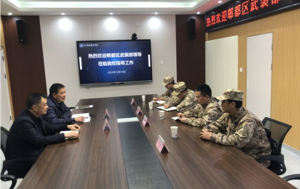 2023年12月14日,郫都区武装部长李舸、政委宋克建一行4人莅临我校调研指导征兵工作。副校长黄勇会见了李舸一行并主持召开了交流座谈会。