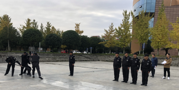 为提升学校保安人员素质,规范日常安保行为,提高其反恐防暴和消防应急处置能力,确保校园安全稳定。在为期半个月的集中训练基础上,11月16日,我校组织全体保安在天佑广场开展2023年保安技能比赛活动。