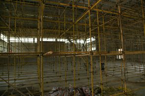 6月14日上午,随着最后一片纵梁安全平稳的落在设计位置,标志着我院多功能礼堂装修工程舞台表演区桁架部分主体顺利完成,较原节点任务提前2天。为舞台灯光设备的安置、舞台表演区台面的铺装奠定了坚实基础。 多功能装修项目装修建筑面积1606.01㎡,可容纳1200余人。本项目自2016年6月1日开工以来,在学院领导的亲切关怀和指导下,基建处科学管理,精心组织。通过与设计单位、消防管理单位、施工单位等部门沟通交流,不断优化设计及施工方案,多方调研考察,缩减了项目预算,解决了舞台表演区跨度大、承载要求高、消防变更费用高等技术经济难题。 施工期间,学院领导亲临现场,并组织各专业施工队伍负责人员召开碰头会,反复疏理工程量清单及施工存在的有关问题并加以落实,强调了各专业队伍相互配合的重要性。我院严谨务实、积极主动的工作态度,赢得了各建设参与方的好评与认可。 观众区脚手架工程