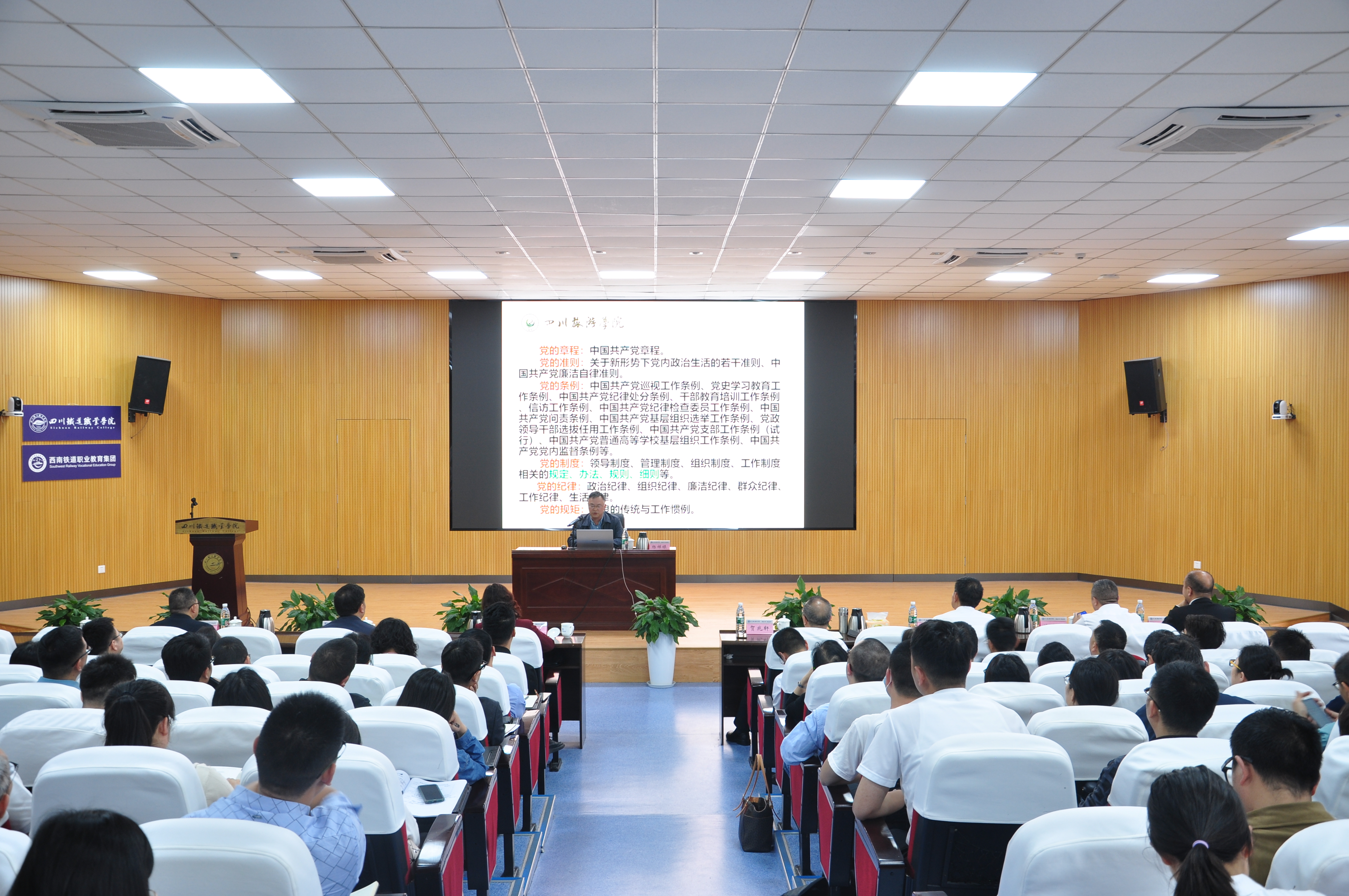 根据党纪学习教育读书班安排,4月24日,学校邀请四川旅游学院原党委副书记、纪委书记、研究员杨祥禄到校开展题为《学习贯彻<中国共产党纪律处分条例> 全面加强党的纪律建设》专题辅导讲座。党委书记贺兆轩主持会议。 杨祥禄从“党史上的纪律教育回顾”、“《条例》的制定和历次修订情况”、“深刻认识修订《条例》的重要意义”、“准确把握《条例》修订的主旨要义”、“切实抓好《条例》的学习贯彻”五个方面,运用大量典型案例进行了深入浅出的解读和阐释,详细介绍了党在各个历史时期纪律教育开展情况,对《条例》的制定和历次修订变化进行了比较,阐述了开展党纪学习教育的重要意义,梳理了《条例》的主旨要义,对如何学习贯彻《条例》提出了建议。