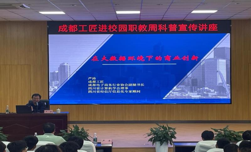 为大力弘扬工匠精神,引导师生了解科技前沿动态,进一步强化创新意识,帮助教师提升新技术应用能力、帮助学生开阔职业发展视野,5月21日,公共教学部在学术报告厅举办“成都工匠进校园”专题讲座,特邀成都工匠、高级工程师、成都市教育局产业导师、成都市电子商务协会副秘书长、四川省计算机学会理事严涛来我校作题为“在大数据环境下的商业创新”的讲座,学校近300名师生现场聆听。 严涛以自身的就业创业经历为切入点,介绍了传统产业的数字化转型升级,揭示了互联网三级“火箭”:云计算—大数据—人工智能;通过企业案例和数据分析,通俗地阐述了电商背后的大数据规则,在大数据时代背景下的营销变革及如何用数据指导个性化营销,并为同学们传授了关于电商行业的创新创业诀窍。 严涛关于大数据与电商的深度数据解析和数字化环境下的商业创新的精彩讲述让在座师生耳目一新。在互动环节中,对同学们提出的就业、创业问题,严涛结合自己的经历以及对大数据人工智能时代背景的深刻领悟,给予了悉心的指导、细致的解答。 本次讲座不仅让师生深切地体会了工匠精神的丰富内涵,还促进了同学们对于创新创业新的思考,进一步强化创新思维。大数据环境下,我们都要提升自身的数字素养,拥抱智能数字化时代,通过新技术突破创新,不断推进事业高质量发展。