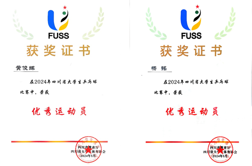 作为四川省大学生水平最高、影响力最大的体育赛事之一,本次乒乓球比赛吸引了来自全省80余所高校的986名运动员同台竞技。竞赛中,我校队员顽强拼搏、发挥出色,两支混双组合分获竞赛第二名、第五名,男团和女团均进入前16强,2名同学被评为优秀运动员。