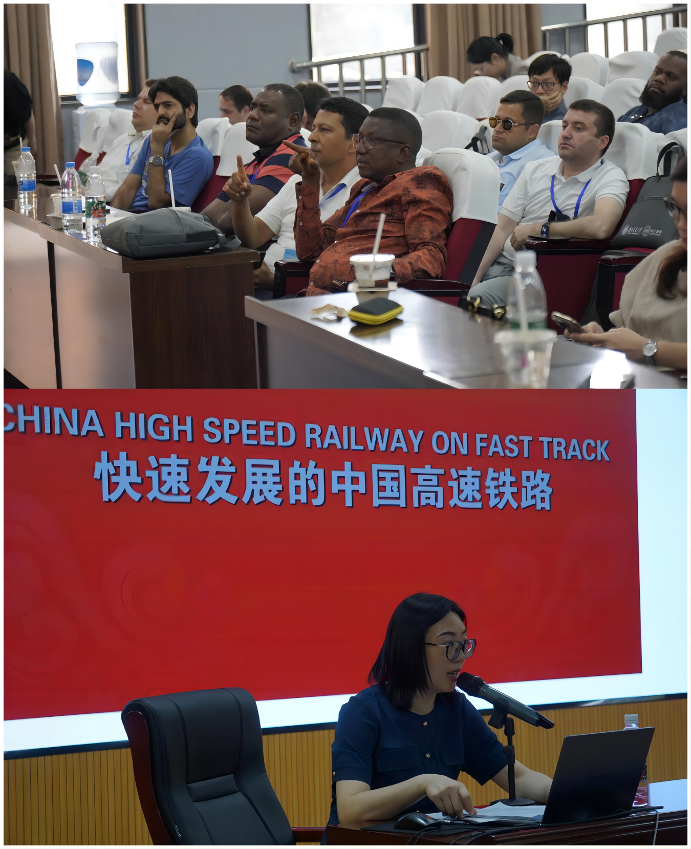 学校对培训班的学员们表示热烈欢迎,并希望通过此次交流,能促进跨领域、跨国界的合作与交流。 开班仪式后,由学校国际教学团队为研修班全体学员讲授中国高铁运营安全管理。课程结束后,学员们就本国铁路运营管理问题与团队在现场进行了互动交流。